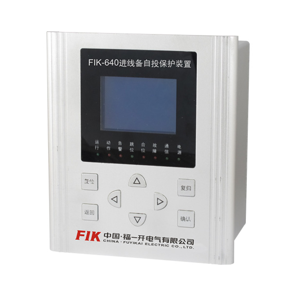 FIK-640進線備自投保護裝置適用于10KV及以下電壓等級電力系統(tǒng)。當主電源故障或其它原因斷開失電后,自動將備用電源投入工作,實現(xiàn)進線電源互投功能,在主電源恢復供電后能自行斷開備用電源,投入主電源,以實現(xiàn)工作電源自恢復功能。