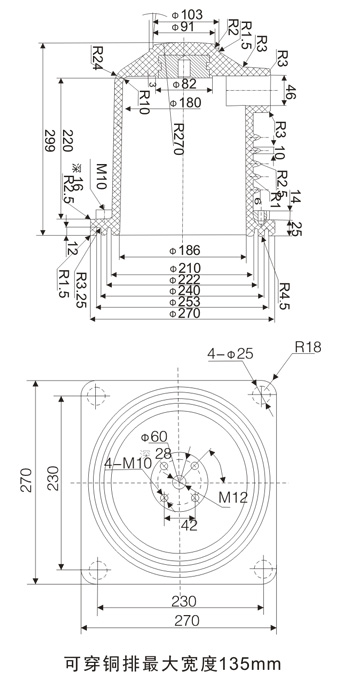 CH3-10Q/230  4000A中置柜觸頭盒為環(huán)氧樹脂APG工藝壓力凝膠成型結構,用于各種手車式開關柜,起絕緣隔離和聯(lián)接過渡作用。