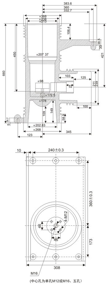 CH3-40.5KV/660-Ⅱ(改進(jìn)型)帶屏蔽觸頭盒(二通)KYN61為環(huán)氧樹(shù)脂APG工藝壓力凝膠成型結(jié)構(gòu),用于各種手車式開(kāi)關(guān)柜,起絕緣隔離和聯(lián)接過(guò)渡作用。