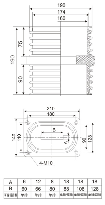 TG3-10Q/110×180穿墻套管適用于額定電壓(10~35)kV, 頻率(15~60)Hz的三相交流系統(tǒng)電站和變電所配電裝置上 ,供導電部分穿過隔板、墻壁或其它接地物,起絕緣支持和外部導線(母線)間固定連接之用。