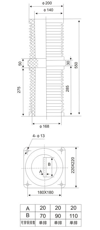 TG3-35Q/180×180  穿墻套管適用于額定電壓(10~35)kV, 頻率(15~60)Hz的三相交流系統(tǒng)電站和變電所配電裝置上 ,供導電部分穿過隔板、墻壁或其它接地物,起絕緣支持和外部導線(母線)間固定連接之用。