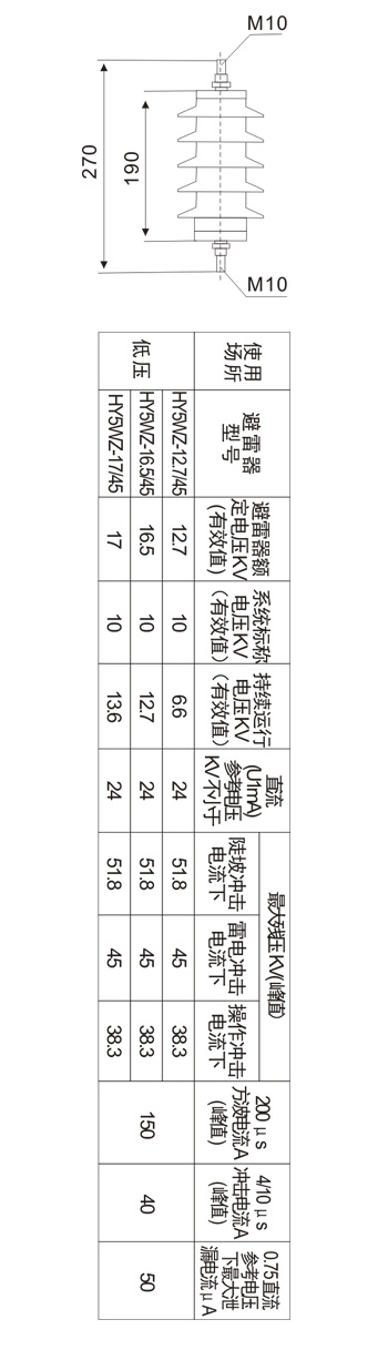 HY5WZ-10KV 避雷器是用來保護(hù)電力系統(tǒng)中各種電器設(shè)備免受過電壓損壞的電器產(chǎn)品,具有良好保護(hù)性能。因為氧化鋅閥片的非線性伏安特性十分優(yōu)良,使得在正常工作電壓下僅有幾百微安的電流通過,便于設(shè)計成無間隙結(jié)構(gòu),使其具備保護(hù)性能好、重量輕、尺寸小的特征。當(dāng)過電壓侵入時,流過閥片的電流迅速增大,同時限制了過電壓的幅值,釋放了過電壓的能量,此后氧化鋅閥片又恢復(fù)高阻狀態(tài),使電力系統(tǒng)正常工作。
