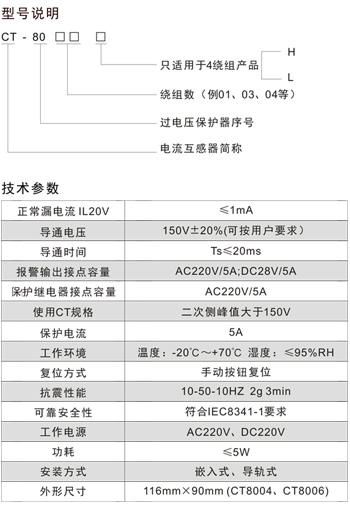 CT-8004電流互感器過電壓保護(hù)器在電力系統(tǒng)中,電流互感器(CT乯應(yīng)用于一次電流的測量與控制,正常工作時互感器二次側(cè)處于近似短路狀態(tài),輸出電壓很低。在運(yùn)行中如果二次繞組開路或一次繞組流過異常電流(如雷電流、諧振過電流、電容充電電流、電感啟動電流等),都會在二次側(cè)產(chǎn)生數(shù)千伏甚至上萬伏的過電壓。不僅給二次系統(tǒng)絕緣造成危害,還會使互感器過激而燒損,甚至危及工作人員的生命安全。