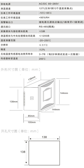 FIKW3000電氣接點溫度在線監(jiān)測裝置是我公司借鑒國內外同類產品為保證電力電器良好的運行環(huán)境,針對電氣設備接點部位由于材料老化、接觸不良、電流過載等因素引起的溫升過高的故障隱患,自行研制開發(fā)的能夠及時監(jiān)測到電氣接點溫度的在線監(jiān)測裝置。該產品采用低功耗設計、無線測溫等技術,具有隔離徹底、安裝方便、抗干擾能力強、工作可靠等特點,能很好的解決高電壓狀態(tài)下的溫度測量問題。該產品主要應用于高壓開關柜觸頭及接點、刀閘開關、高壓電纜中間頭、干式變壓器、低壓大電流柜等設備的溫度監(jiān)測。保障自動化作業(yè)的高效、安全運行。
