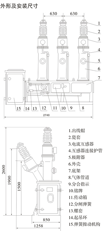 LW8-40.5型斷路器配用CT14型彈簧操動(dòng)機(jī)構(gòu)。